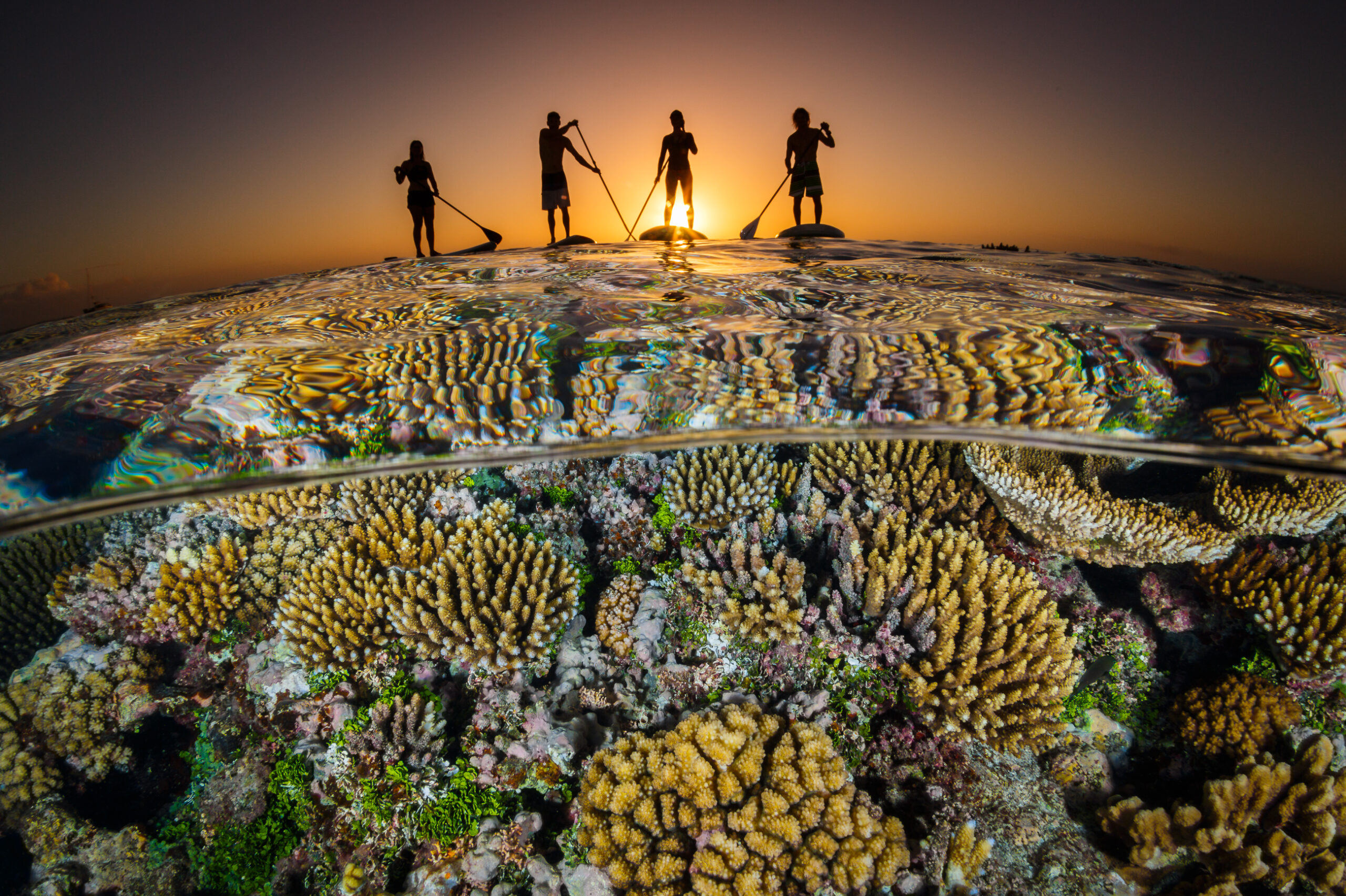 Photographer Description: This image was taken in Ha’apai, Tonga. Stand up paddle boarders were out exploring the shallow reefs at sunset. I wanted to demonstrate the innate bond humans have with the ocean, whether we are physically in it or floating on the surface. Our inherent relationship with the ocean is eternal and we must care for it in a way that ensures sustainability for the future.
