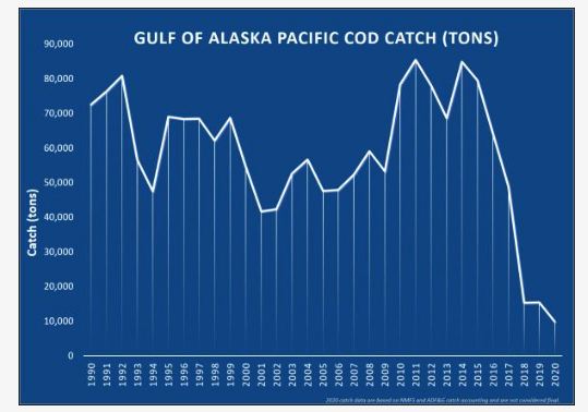 - In 2017, Alaska-wide Pacific cod first wholesale production value was at a 12-year peak, worth an estimated US$510 million.