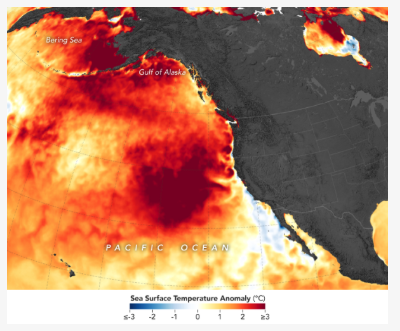 From the winter of 2013/2014 – 2014/2015, the northeast Pacific experienced the greatest MHW recorded since 1880.