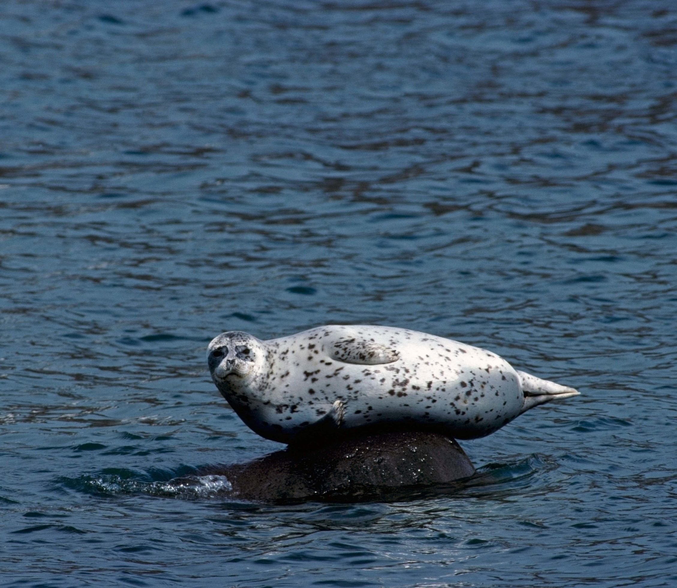 A Spotted seal perched on a rock on Nunivak Island, Alaska.