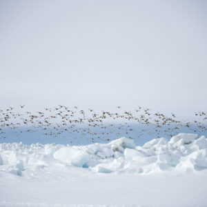 Off the island’s southern coast, a polynya, or area of open water surrounded by sea ice, provides important winter habitat for this wildlife.