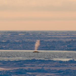 A bowhead whale plume in the distance.