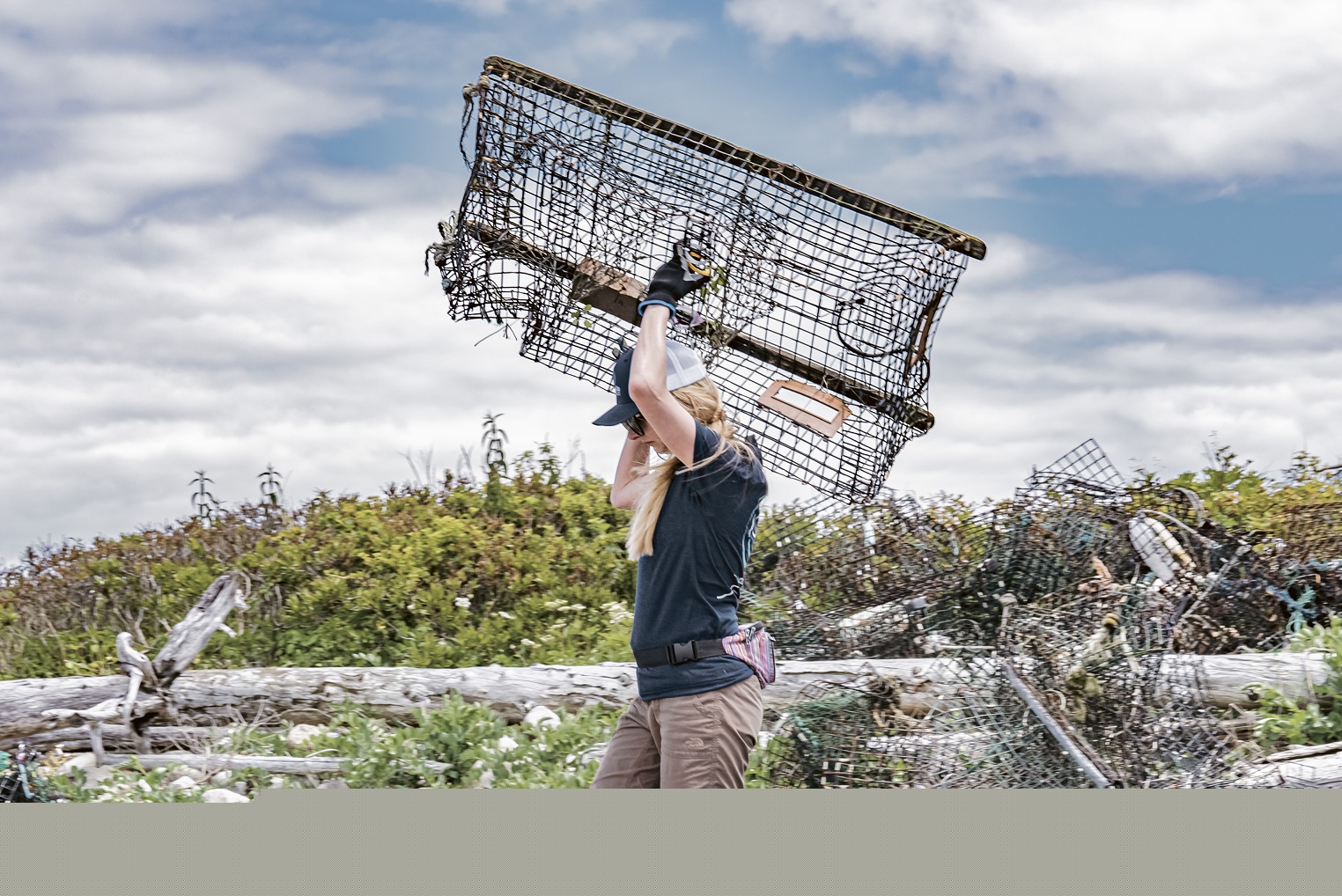 BAR HARBOR, MAINE – From June 23-26, Ocean Conservancy’s Global Ghost Gear Initiative® (GGGI) partnered with the Rozalia Project for a sailing expedition with the aim of removing abandoned, lost, and discarded fishing gear (ALDFG) from remote islands in the Gulf of Maine. During the expedition, they were able to remove 4,723 pounds of gear and other marine debris. For a cleanup on Outer Bar Island, the group was also joined by several volunteers, including from the Maine Island Trail Association.