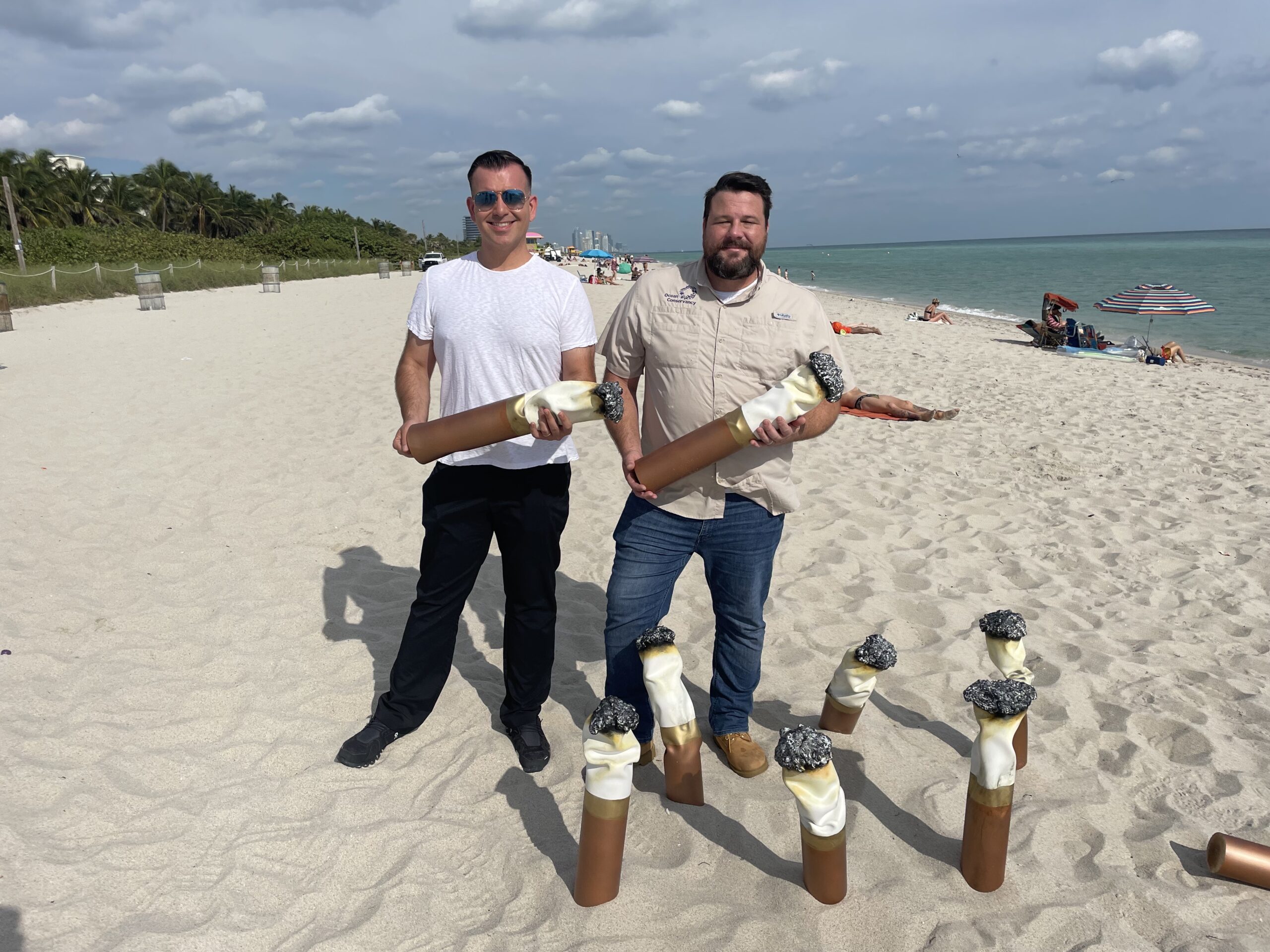 MIAMI BEACH – Ocean Conservancy is making a statement so beach goers will pay attention to the new law that bans smoking on beaches in Miami Beach. Giant cigarette butt sculptures were temporarily placed in the sand at a news conference today to educate the public about the new smoking ban that officially became law on January 1.