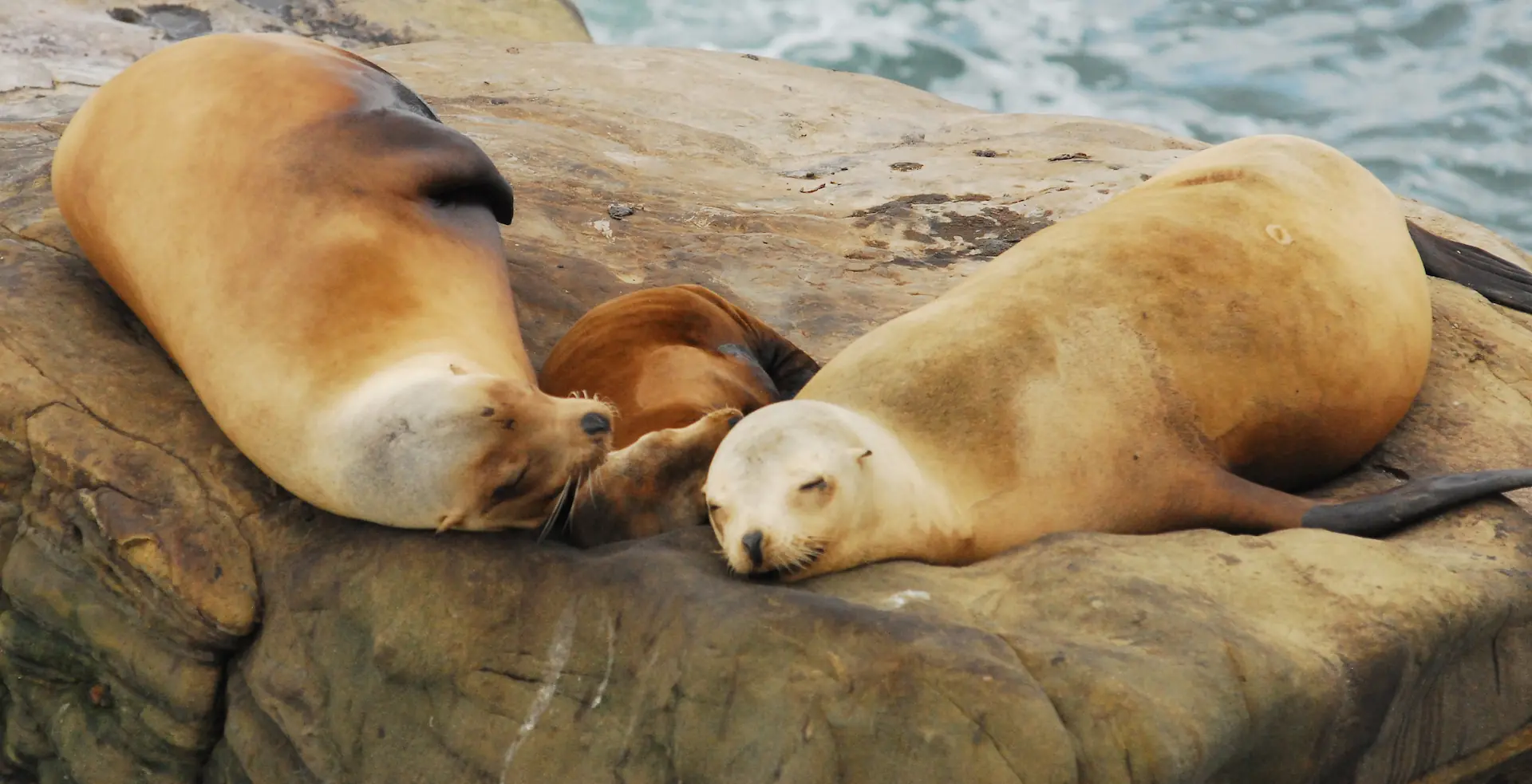 Ever wonder how you can tell the difference between a sea lion and a seal? Seals have ear holes, while sea lions have visible ear flaps. Also, sea lions use their fore-flippers to propel through the water and “walk” on land, where seals scoot along on their bellies on land.