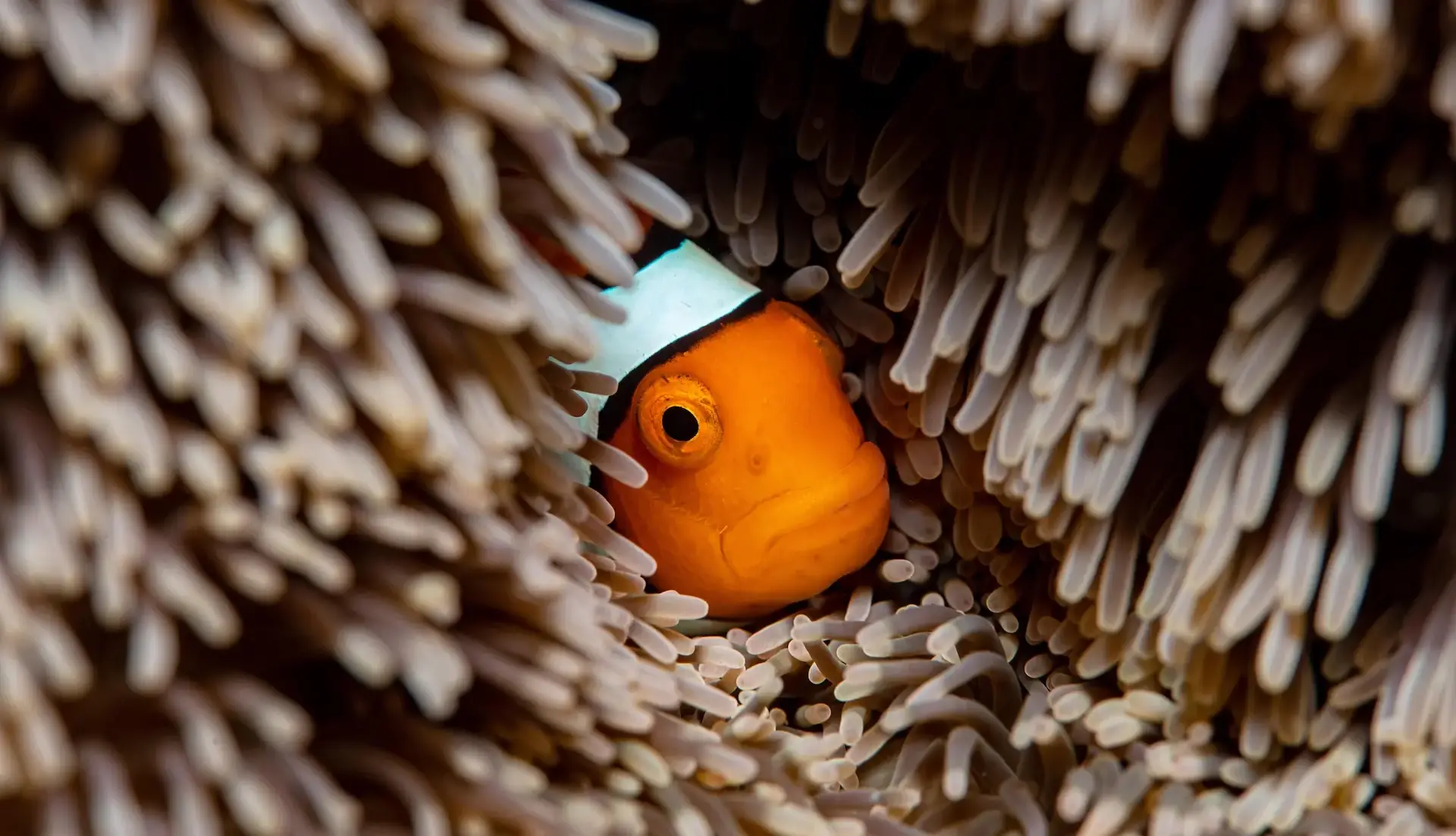 Clownfish won’t settle in just any anemone, however. Only about 10 of more than 1,000 anemone species are suitable hosts. The mucus layer on clownfish skin gives them immunity to the anemone’s stinging nematocysts. Before they can live in an anemone, clownfish first must become acclimated to its sting by gently touching the anemone’s tentacles. Other fish do not have the same protective mucus layer, so the host anemone helps deter potential clownfish predators.