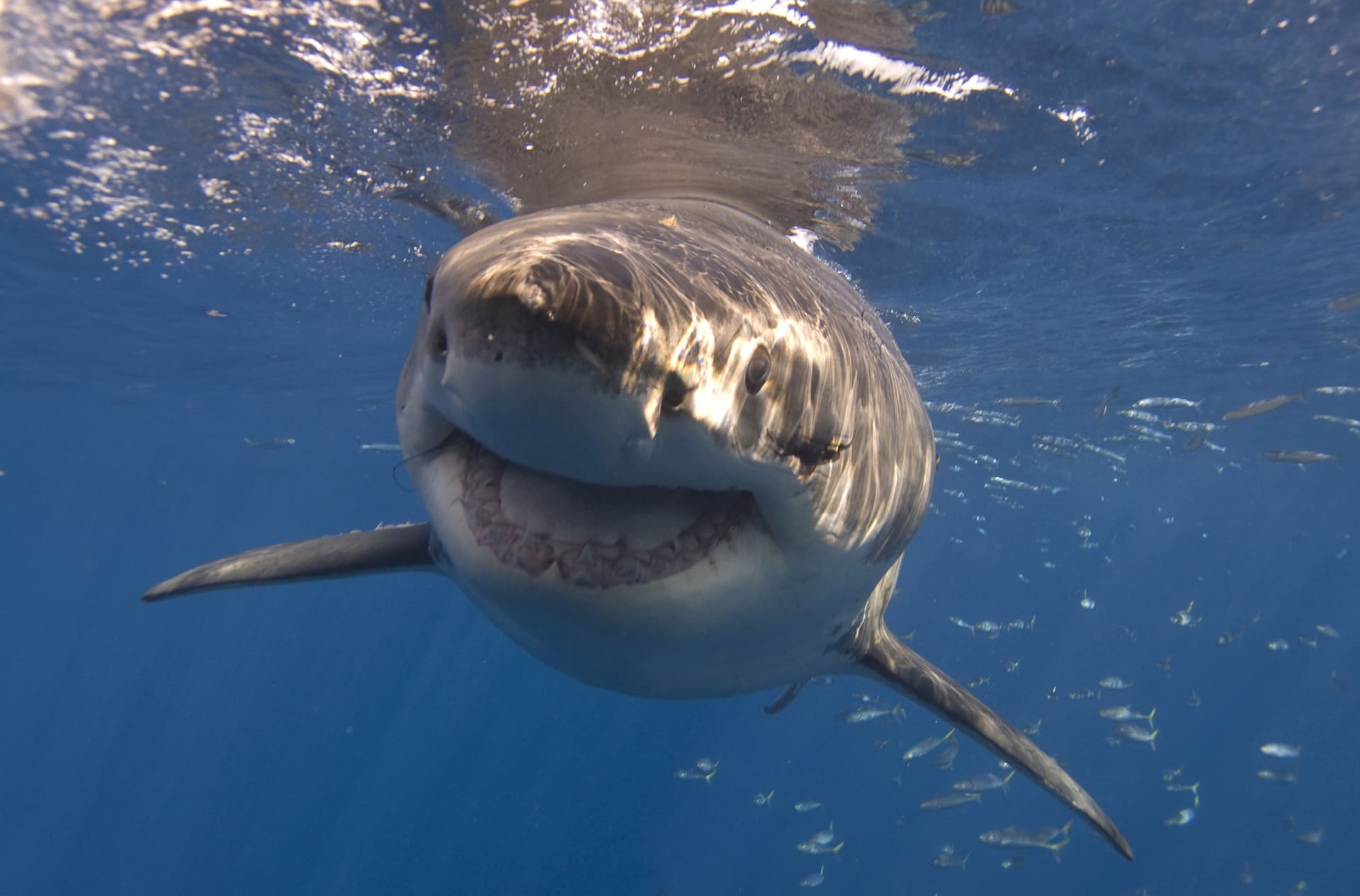 White sharks’ scientific name means “ragged-toothed.” It comes from the Greek word “carcharos” for ragged, and “odon” for tooth.