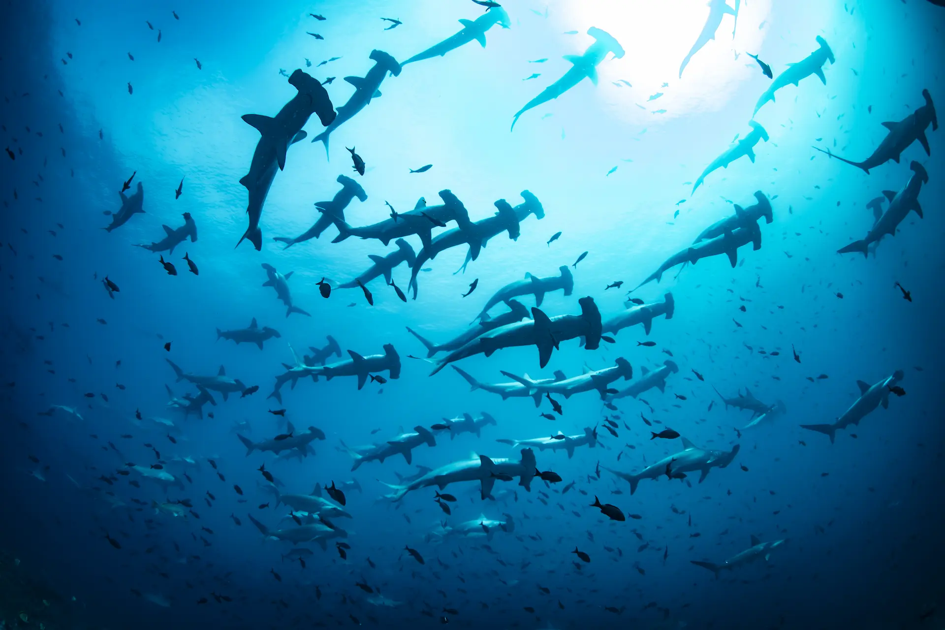 There are nine species of hammerhead shark, most of which are generally pretty small in size. The biggest is the great hammerhead, which can grow up to 20 feet long!
